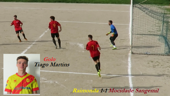 só que esta vantagem durou pouco tempo e logo passados 10 min. o Raimonda finalmente chega ao golo e empata a partida por intermédio do Jovem "Tiago Martins"