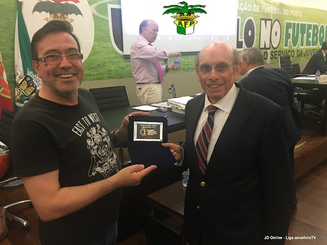Presidente da AF Porto,Dr Lourenço Pinto recebe lembrança da 2ª Gala Liga amadora TV "Troféus 2017" em dia de assembleia decisiva para a votação das propostas de alargamentos para os campeonatos de 2017/2018